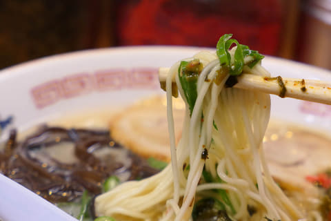 なぜ、博多駅ホームのラーメンは繁盛しているのか? そしてなぜ、無性に食べたくなるのか? まずは暖簾をくぐり、ホーム上で豚骨ラーメンをいただいてみよう。