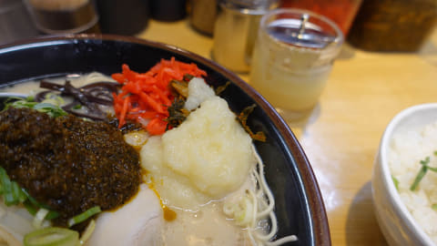 さらに、駅ラーメンは紅ショウガや高菜を自由に取ることができ、多めにトッピングを入れれば「こってりしたラーメンを食べた!」という満足感を得ることができる。もっと食べたければオプションで明太ご飯を頼むもよし、焼き豚・ねぎ増量などのトッピングを頼むもよし、替え玉を頼むもよし。