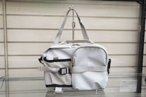 最初に紹介してくれたのは、軽さを追求しながらもファッションに自然に馴染むシンプルなデザインを目指したジャパンメイドブランド、CIE(シー)の「グリッド3 ボトルショルダーバッグ」です。