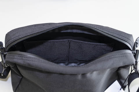 サイズは260×160×70mm(幅×高さ×奥行)、重さは260g。止水ファスナーを採用していたり、メインスペースの背面にホックで留められる仕切りポケットが付いていたりと、細部にまでメイド・イン・ジャパンのこだわりが見られます。