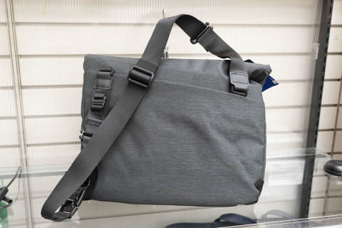 「本体には強度に優れた1680デニールのコーデュラバリスティックナイロンを、フロント部には防水性に優れた840デニールナイロンのコーティングファブリックを使用しています。14型PCが入るパッド入りのPC用ポケットや、ギアを収納できる複数のポケットを搭載。左右どちらでも使えるリバーシブルのショルダーストラップも特徴のひとつです」