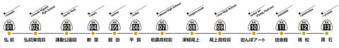 弘高下駅は駅名の通り、弘前高校の下(南側)に位置する駅です。弘前高校の生徒が通学用に使っていることを思わせる駅名ですが、近隣には弘前大学のキャンパスもあります。