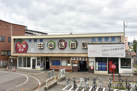 弘南鉄道がターミナルにしている中央弘前駅は、弘前駅から約1.4km西にあります。中央弘前駅という駅名から市街地の中心に立地しているとイメージしてしまいますが、駅前の道路は自動車・歩行者の往来が少なく、周辺も特に繁華街としてにぎわっているわけではありません。また、駅舎もこぢんまりとしていて、“中央”感はありません。