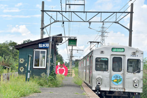 小栗山駅を過ぎると、大鰐線の線路は県道127号線から大きく離れて電車の姿は見えなくなりました。それでも県道127号線をひたすら歩き、128号線の交差点を北へ進んでいくと松木平(まつきたい)駅が見えてきます。