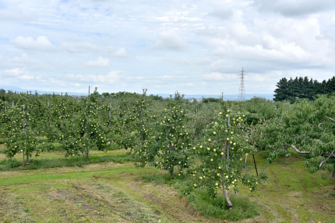 このあたりはリンゴ畑が多く、ホームにもリンゴのモニュメントが設置されています。リンゴのほかにも多種類の農産物を栽培しているようです。