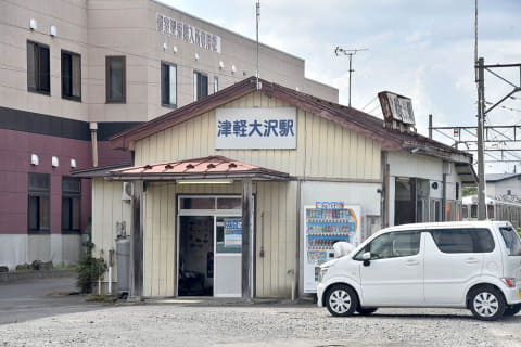 津軽大沢駅は構内に車両検修所・電気管理所・変電所・保線管理所がある、大鰐線にとって重要な駅です。また、駅舎に隣接して特別養護老人ホームがあり、同施設の1階トイレは駅トイレを代替しています。ただ、そのほかに目立つ施設や商店は周囲にありません。
