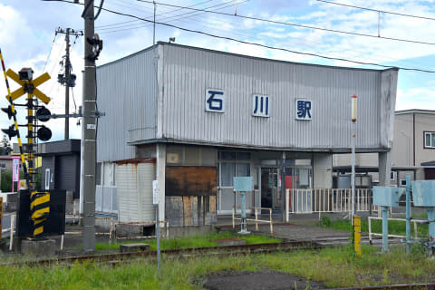 石川駅には貨物用の側線があり、そこには工事・保線などで使用されるホキ車という貨車が留置されています。この貨車を目当てに同駅を訪れる人もいるようですが、そうしたマニアは多くはありません。駅周辺はいたって静かです。