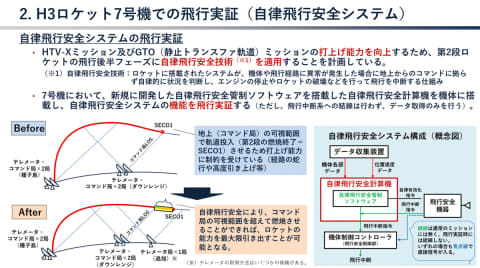 今回の7号機では、自律飛行安全システムのソフトウェアが2段ロケットの飛行の後半で位置や速度といったデータをもとに、計画通り正しく飛行しているかの判断を行ないます。今回は実証のため、データ収集にとどまりますが、将来はH3ロケット自身が「正しく飛んでいるか」を判断するようになるのです。