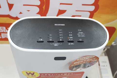 まずは即暖性の高さで人気のファンヒーターから、複数のセンサーを搭載したモデルをご紹介。アイリスオーヤマの「大風量セラミックファンヒーター」は人感・室温と2つのセンサーでムダなくパッと温めることができる人気モデルです。