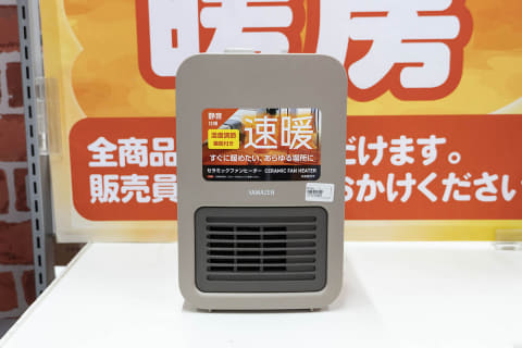 よりコンパクトなものをお求めの方には、ヤマゼンの「ミニセラミックファンヒーター」がおすすめ。このサイズで温度調整機能が付いているのもポイントです。