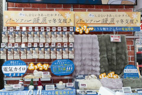 パーソナル暖房で欠かせないのが毛布やカイロの小物類。どれも消費電力が小さいうえ、体に触れて暖を取るタイプなので効率良く体を温めることができます。コロナ禍では自宅用の購入が多かったのですが、最近ではオフィスで使う方も多いそうです。