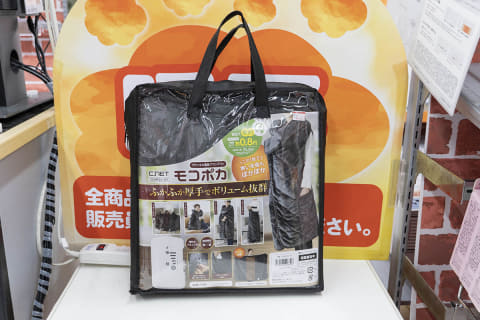 最後は、毎年話題になる着る電気毛布をご紹介。「今年は取り扱うメーカーが増えて、ラインナップも増えている」と森廣さん。シィーネットの「モコぽか 着る電気ブランケット」はボタンの付け方によってひざ掛け、ポンチョ、マント、スカートと様々なスタイルで使うことができる人気商品です。