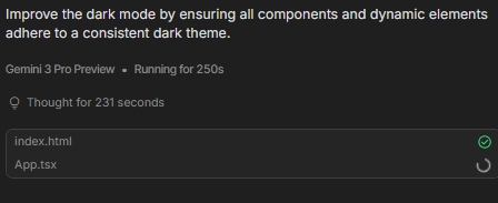 ただし、3.0 Pro Previewには問題点もあります。精度の高い実装は良いものの、ユーザーの問い掛けに応じず、いきなり実装する場面が増えました。2.5 Proでは実装方法や変更点を教えてくれましたが、3.0 Proでは変更点を知らせずに実装を開始するため、何がどう変わったか不明瞭です。