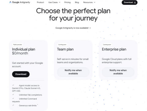 また、多くのAIコーディングツールが月額課金や従量課金で提供しているなか、今のところは無料で利用できるのもAntigravityの強み(有料プランの詳細は記事執筆時点では未発表)。一定の制約はありますが、実際、その制約下でどの程度のソフトウェアが作れるものなのか、確かめてみましょう!