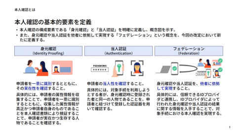 これは、「身元確認の保証レベル」であるIAL(Identity Assurance Level)、「当人認証の保証レベル」であるAAL(Authenticator Assurance Level)、そして「フェデレーションの保証レベル」であるFAL(Federation Assurance Level)の3つの保証レベルを指している。