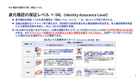 つまり、今までIAL1とされていた自己申告のみの身元情報はIALとしては扱われず、仮に自己申告であっても、その情報は検証される必要があるという定義だ。従来の未検証で自己申告のみというのは、IALなしという位置づけになった。