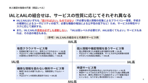 AAL1でも多要素認証は提供可能で、「その使用を推奨すべき」となっている。AAL1のポイントは、フィッシング耐性、リプレイ攻撃耐性が要求されないという点で、攻撃には脆弱な面があるということ。そうした点を踏まえて、サービス側は保証レベルに合わせた認証を要求することになる。