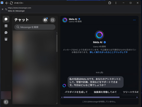 なお、Facebookアカウントを持たないMessenger専用アカウントの場合も、アプリを起動するとWeb版にリダイレクトされ、引き続き利用できます。専用アプリが終了すると聞くと不安になりますが、Web版をアプリ化するだけで、これまでとほぼ同じ感覚で使い続けられると感じました。