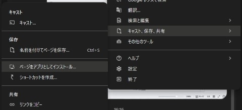 方法は至ってシンプルで、ChromeでWeb版を開き、設定から[キャスト、共有、保存]→[ページをアプリとしてインストール]を選択するだけです。Windowsではデスクトップ上にショートカットが生成されるので、これをタスクバーに置いておくことで、使い勝手があまり変わらずに利用できます。実際に試してみると、ブラウザー内のタブとして立ち上がるのではなく、ウィンドウが独立しているので違和感や不便さはありません。またタブやアドレスバーも表示されないため、視認性もよいです。