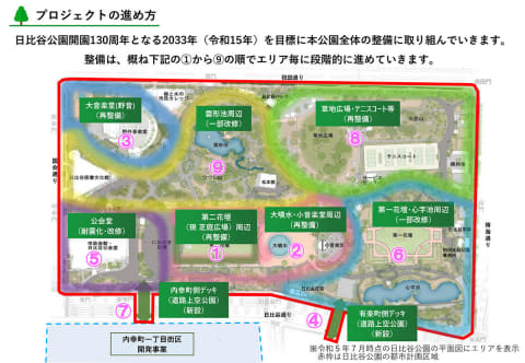 一方の日比谷公園のプロジェクトはエリアごとに段階的に整備が進められ、日比谷公園開園130周年となる2033年に完了する計画です。2030年代に、街と公園が一体的に新たなステージを迎えることになります。