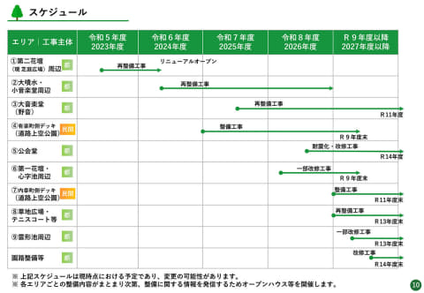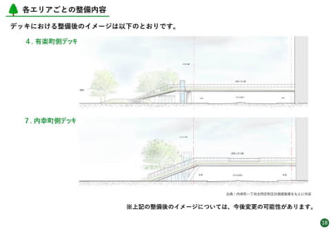 そのほか、有楽町側デッキ新設、雲形池周辺、第一花壇・心字池周辺の一部改修、公会堂の耐震化・改修と、ほぼ全域にわたって順次再整備が進められます。