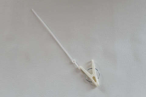 ピンチに結束バンドが付いているだけというシンプルな構造で、バンドを角ハンガーの穴に通して固定するだけと取り付けも簡単。大昔からあったアイテムなのかもしれませんが、これまで自力修復(あるいは我慢)でどうにかしてきたことから、アイテムを探したことがなかったため、感動したし、これまで探さなかったことを後悔もしました。