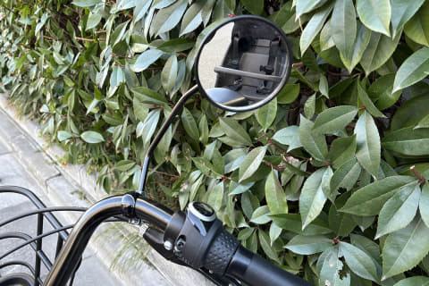 子乗せ自転車は駐輪場で幅を取ってしまい、周囲にとってはただでさえ邪魔になります。ミラーは自転車のサイドにはみ出しているわけではないのですが、周囲から見れば「邪魔感」が増幅するのではないか、ということで、駐輪場ではミラーを内側に倒しています。