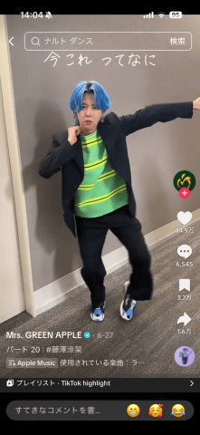 当初は中国の楽曲で踊られていましたが、日本で話題となった際、Mrs. GREEN APPLEの「ライラック」が、ダンスの激しい動きにマッチしたため、この曲で踊ることが定番化しました。TikTokではMrs. GREEN APPLEもミームに参加。「本人に届いた!」とユーザーが喜びました。