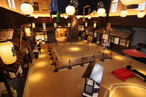 利便性が向上したことに着目して、JR東日本も両国の魅力を高める施策に取り組みます。2016年には両国駅の西口駅舎を改装し、駅舎内に複合商業施設「―両国―江戸NOREN」をオープン。施設内には、大相撲の街・両国を全面的に打ち出すべく土俵も設置されました。