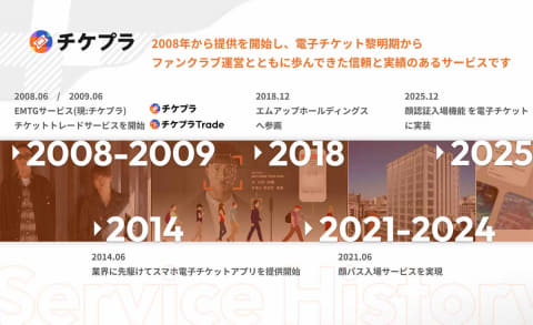 チケットプラスは前身となるEMTG(エンタテインメント・ミュージック・チケット・ガード)時代の2003年から、ファンクラブ事業と円形しチケット不正転売対策に取り組んでいます。エムアップグループへの参画などを経て、現在はチケットプラスに社名を変更。電子チケットアプリや、主催者公認のチケットリセールサービス「チケプラトレード」の開発・運営などを行ない、ファンが安心してライブエンターテイメントを楽しめる環境作りに取り組んでいます。