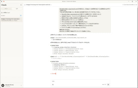 プロンプトの体裁を少し変えただけですが、これだけで違いが出てくるものなのでしょうか。さっそく作り始めてもらいます。なお、いずれも先ほどの作業時のやりとりや出力ファイルは全て削除(参照できない別フォルダに移動)し、Claude Codeのデスクトップアプリでは設定で「メモリー」機能をオフにして、作業履歴などからの影響がないようにしています。