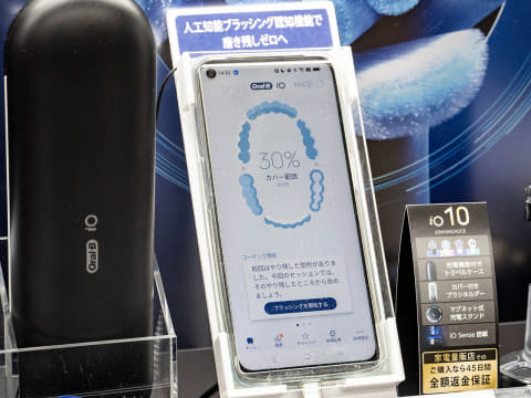 ブラウンのオーラルBは、歯科のクリーニング器具から着想を得て開発された独自の丸形回転ブラシが特徴で、ブラシの毛1本1本を振動させる遠心マイクロモーションを搭載したiOシリーズを展開しています。上位機種では「iO9」のビックカメラオリジナルモデルが人気です。