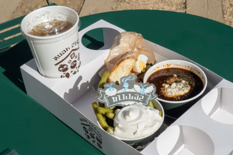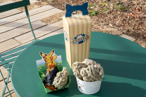 カヤツリタウンはフード類も充実しています。「トレーナーズマーケット」では、ポケモンのモチーフを散りばめたバゲットサンドやおにぎり、ポップコーンなどが並び、散策の合間に食べることができます。