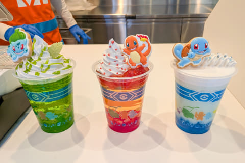 また、ポケモンセンターの隣にある「フレンドリィショップ」ではオリジナルドリンクを販売するほか、「おいしいみず」、「サイコソーダ」、「ミックスオレ」など、ゲーム内ではおなじみのドリンクも用意されています。