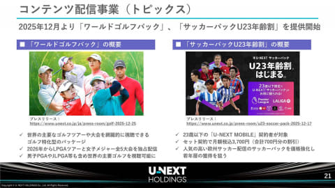 これは、スポーツイベントの権利が高騰しているからでもあるだろう。スポーツをシーズンまとめて配信することは、そのスポーツが好きな人の契約を、そのシーズンの間引き止める効果をもつ。U-NEXTとしてはそこを重視する、ということなのだろう。