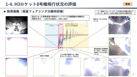 1月の委員会で、JAXAの有田誠PMはロケット搭載のカメラで撮影したフェアリング内の画像と共に、衝撃的な事象が発生していたことを明らかにしました。フライトデータおよび搭載カメラ映像の分析から、次のような特異な飛行シナリオが推定されています。