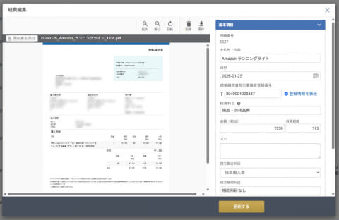 システムに情報登録する際には、支払い先、支払い内容、金額に加えて、用途や目的なども適切に入力しなければなりません。最近では適格請求書発行事業者登録番号を確認し、正確に入力するという作業も1つ追加されました。レシートをアップロードしたときにOCR処理で項目を自動入力できる場合もありますが、それでも手作業は必ず発生します。