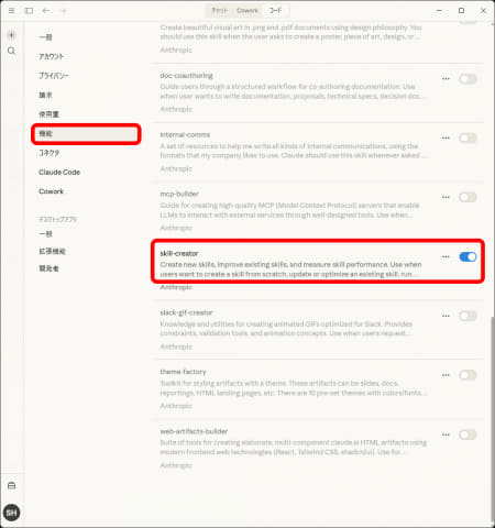 「スキル」や「プラグイン」などの機能を活用する