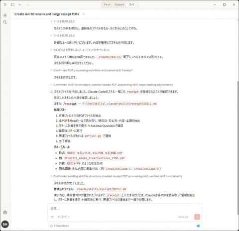 Claude Coworkに経費精算(の手助け)をしてもらうということは、すなわち、そうした人力で行なってきたさまざまな作業を「Claude Coworkに全部教える」ということに他なりません。AIがユーザーの意図を汲み取って、指示していない内容でも気を利かせて作業してくれる部分もありますが、毎回それを同じように繰り返してくれる保証はなく、反対に余計な作業を増やしたり、ミスにつながったりすることもしばしばです。