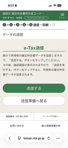 あとは申請内容や、本人情報を確認し、マイナンバーを入力(マイナンバーカードから転記)します。そして最後に送信のためのe-Taxへのログインで、Face IDによるマイナンバーカード認証を行ない、送信画面で[送信]をタップするだけ。送信結果の確認画面で、申告書の控えPDFや入力データを保存できます。