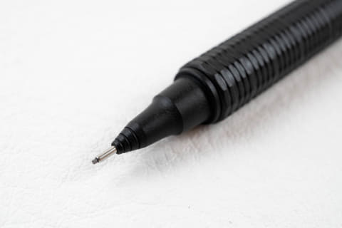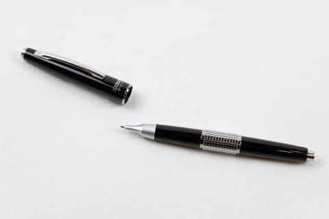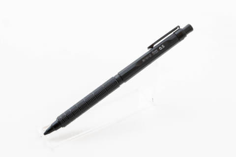 「ここ数年は、製図用シャープペンをベースにしたデザインのものがよく売れています。製図用はペン先端のガイドパイプが長く、手のジャマにならないようにクリップが短いのが一般的で、どのメーカーもそこに寄せて企画・開発している傾向にあります。色は黒が主流でカッコいいものが多いので、ビジネスシーンでも使いやすいと思います」