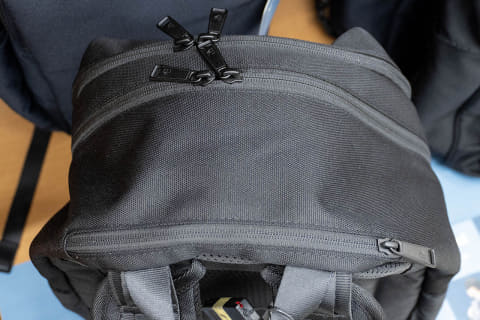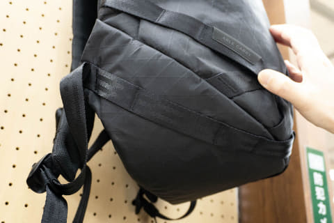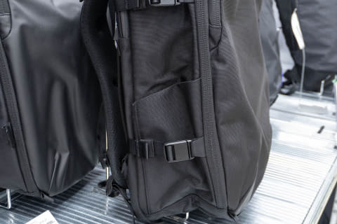 「メインコンパートメントがガバッと開く大容量タイプなので、荷物が多い人におすすめです。背面側にはPCを収納できる部屋があり、アクセスしやすいトップポケットは起毛になっているのでスマホなども傷つけずに守ってくれます。荷物が少ない時はコンプレッションストラップを絞ってよりスリムなスタイルになるのもポイント。表生地の素材が違う3つのモデルから選べるのも『エース』の魅力で、人気の『バリスティック』のほか、リップストップナイロンを使った軽くてリーズナブルな『ウルトラライト』、ウレタンコーティングで撥水性が高く、傷や汚れをガードする『コーテッド』もラインナップされています」