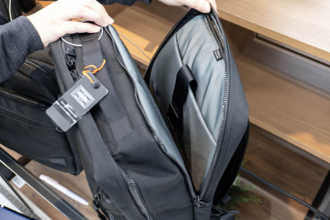 「デイリーユースとしての機能が充実していて、軽量で撥水性に優れているのが特徴です。シンプルなデザインで、大きく開くメイン収納の両サイドにはペットボトルや折り畳み傘が入るポケットを装備。いかにもポーターという雰囲気で、ビジネス用途では売れ筋のモデルになります」