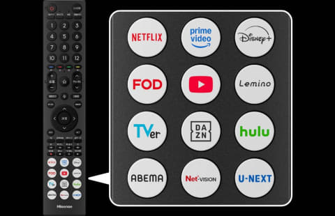 また、ハイセンスのスマートテレビシステム「VIDAA OS」を搭載しており、電源オンから、チャンネル切り替え、ボタン操作のレスポンスなど、高速な動作が特徴。リモコンにはNetflixやAmazon Prime Video、U-NEXTなど人気動画配信サービスのボタンを搭載しており、ダイレクトに動画サービスを呼び出せる。