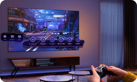 HDMI端子も4系統(65型以上。43~55型は3系統)で、2系統はHDMI 2.1に対応。低遅延ゲームモードにより、特にFPSや格闘・アクションゲームなど判定にシビアなゲームに適している。