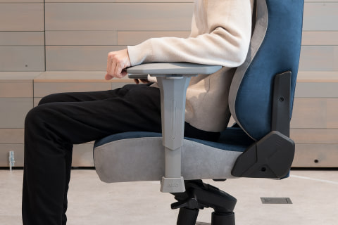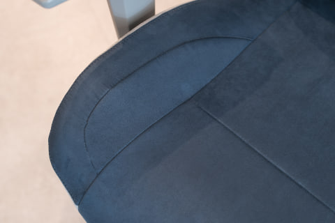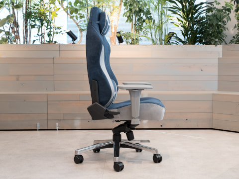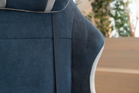 今回試座するインディゴ(Indigo)カラーのFAURAを一目見たとき、筆者は「スーパースポーツカーのシートみたいじゃないか!」とテンション爆上がりでした。表面を起毛させたスエード調ファブリックに、ネイビーとグレーを組み合わせた洒脱なカラーリング。クルマ好きの目線では、高級さと“レーシング・スピリッツ”も感じる組み合わせです。
