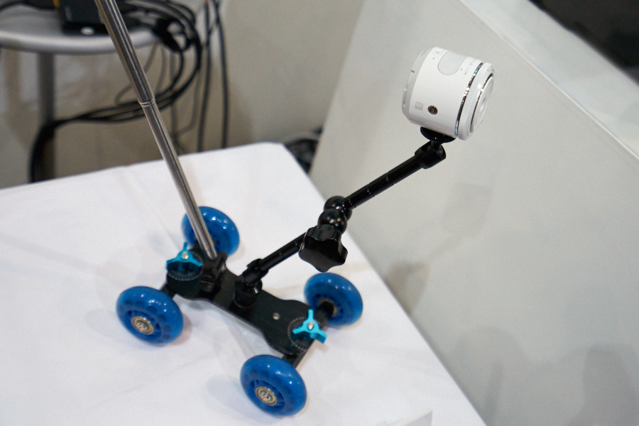 | CP+2015のOLYMPUSブースでも、本製品に似たドリーを見かけたが、使い方の基本は写真の通りだ |
