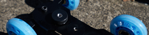 「カメラを載せられる4輪の台車」といった構造で、車輪もレールなどを使わない普通のもの。台車を移動させるためのスティックやカメラ用の雲台も付属しないので、別途カメラ用汎用アーム DN-10274でカメラをマウントしたり、ハンディ一脚 DN-11725を取り付けて制御棒にする、といった工夫をしたほうがいいだろう。