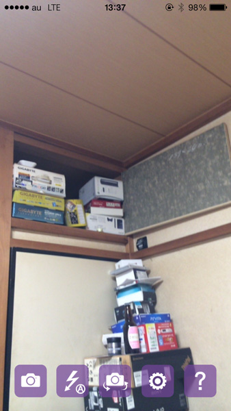 | というわけで、3台並べて撮影テスト。左から、iPad Air、iPhone 5、iPhone 5sだ。なんかデコられているが仕様だ | iPhone 5sからの1枚。そのまんま撮影されているだけである |