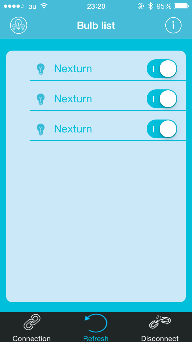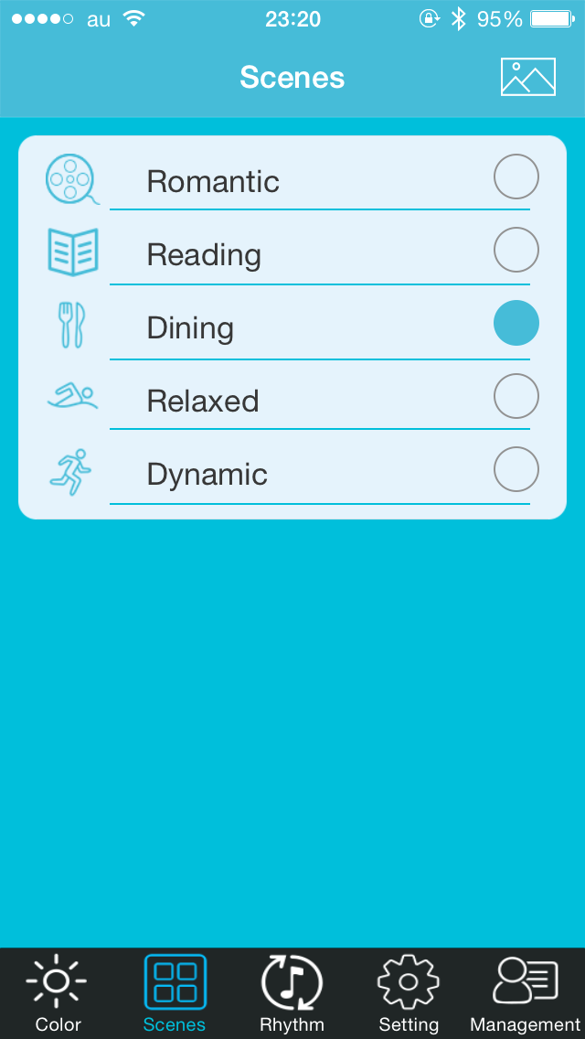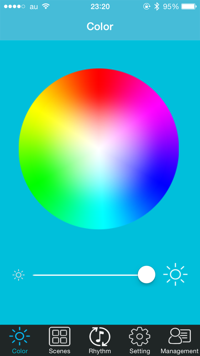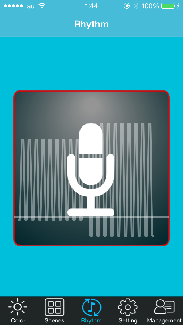 | 接続中のiOSデバイスのマイク機能を利用して、取得した音に合わせて色を自動的に変更することもできるが、だいぶ大雑把な変更パターンだった |